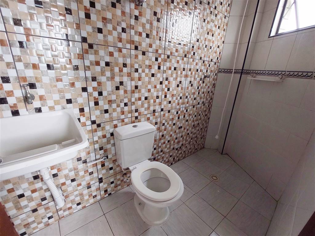 Sala living, cozinha, banheiro social, prédio com interfone, portão eletrônico.